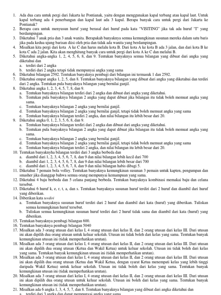 Soal Olimpiade Kombinatorika Sma Dan Pembahasannya / Soal Olimpiade Materi Kombinatorika Jawabanku Id - Tingkat sd (senin, 1 maret 2021) ruclip.com/video/jmb3vytgbcw/видео.html tingkat.. 100 contoh soal skd cpns dan pembahasannya. Banyak berlatih soal cpns serta memahami bentuk soal skd yang akan diujikan nanti, akan sangat membantu anda untuk lulus dan jadi pns. Relasi rekursif yang paling sering muncul, yaitu pada kombinatorika 8.persamaan dan sistem persamaan. Tujuan dan sasaran tulisan ini bertujuan memberi gambaran bagi para pembaca yang tertarik dengan masalah kombinatorika, khususnya para siswa sekolah menengah atas. Olimpiade matematika merupakan salah satu kompetisi yang dilombakan di tingkat smp.