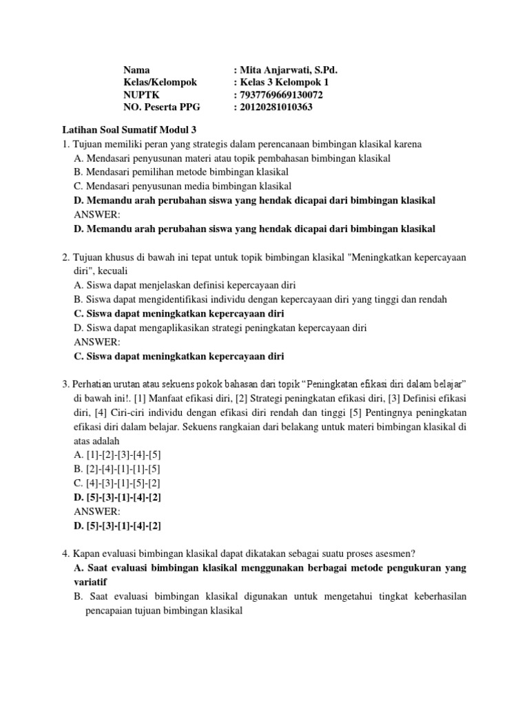 Berikut modul materi ppg bk. 25 latihan soal ppg bk draft. Berikut link latihan ukm ppg atau uji pengetahuan / up tahun 2020. Kisi kisi keahlian ppg 2019 pretest ppg sendiri rencananya akan dilakukan secara online dengan sistem komputerisasi. Fungsi layanan yang bertujuan untuk membantu siswa biar terhindar dari persoalan yang mungkin timbul akhir perkembangan fisik adalah.